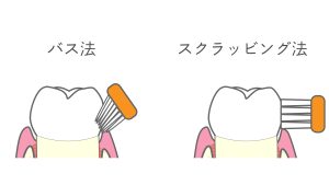 どちらも歯ブラシを小刻みに動かすことが重要で、インプラント箇所は特に力を入れすぎずに優しく歯ブラシを当てることを忘れずにしましょう。スクラッビング法は歯間に沿って縦方向に動かすのもポイントです。